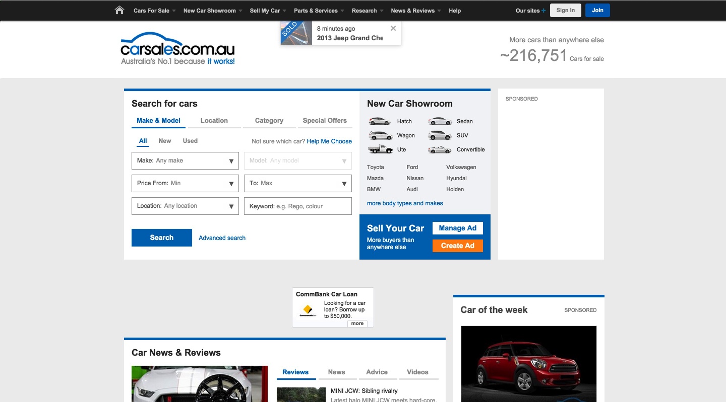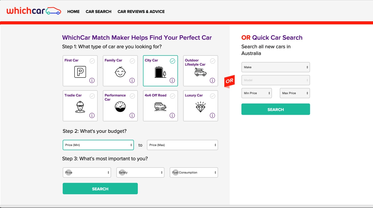 On the other hand, you have Carsales, who try to cram in way too many options at once. Not only that, they don’t have steps like Whichcar, so there’s no real reference point as to where you start.