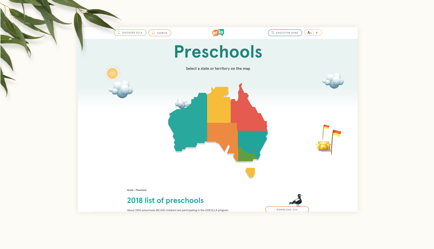 We seamlessly integrate with the ELLA apps to allow participating preschools access to an increased range of support materials and educational reporting.