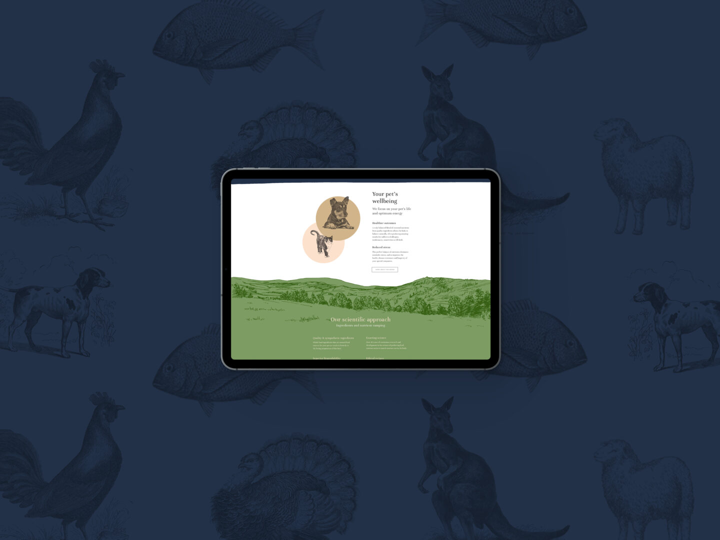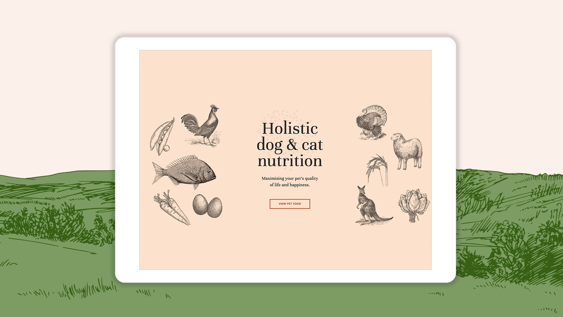The design reflects a premium, yet casual, digital presence and reveals the company as a specialist in formulated and balanced pet nutrition made in Australia, to the international market.