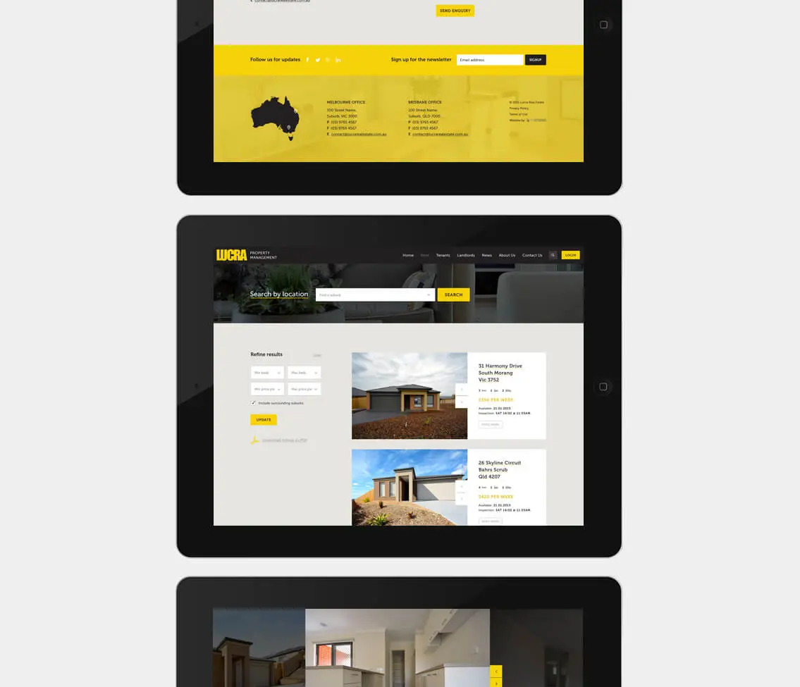 The result is a simple, contemporary design that sets Lucra Property Management apart from the competition. The thoughtful user experience allows users to search and enquire about properties with ease, along with resources that enable users to complete applications and maintenance requests independently.