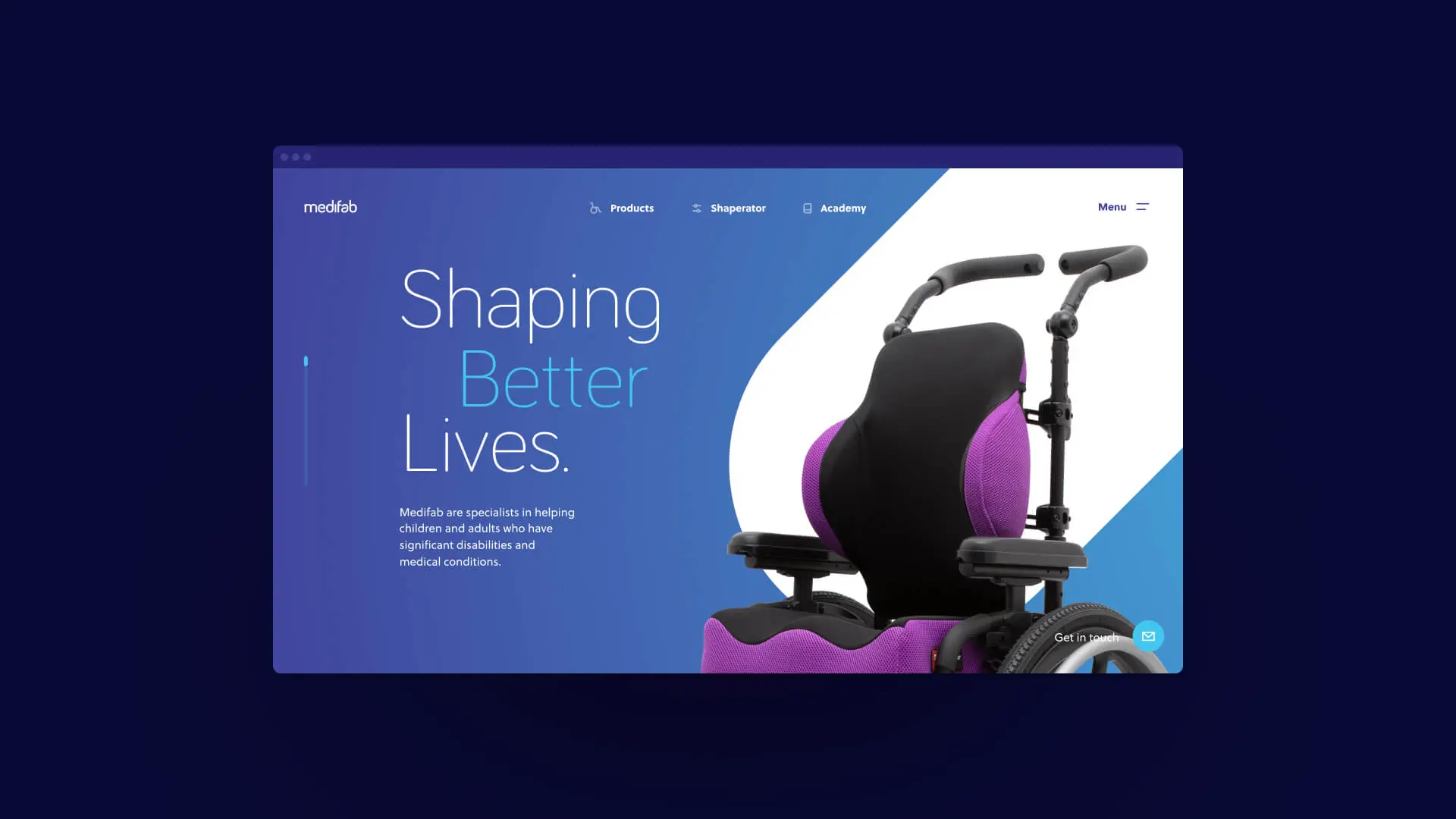 The main direction of the new website was for it to be supportive and inspirational. The look, feel and tone of voice was designed to inspire users whilst being caring and supportive. It presents Medifab as a company that really understands the needs of their audience.