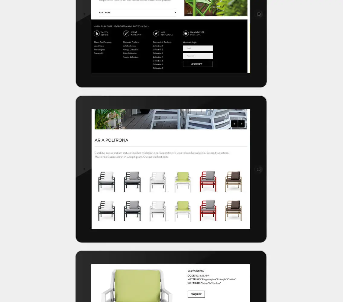 Inspired by the glossy catalogues of the past, Nardi required the website to reimagine this feeling in a simple, easy to use online experience.