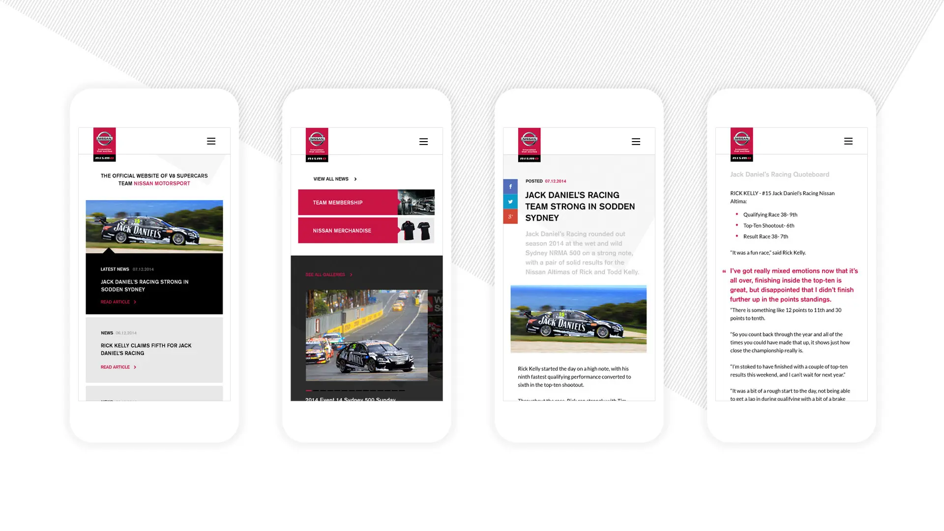 The result is a stylish design that aligns the branding of the top level Nissan website with the racing spirit of the Motorsport team. The clean, minimal design allows users to find and share content easily with particular emphasis paid to optimise the mobile and tablet experience.