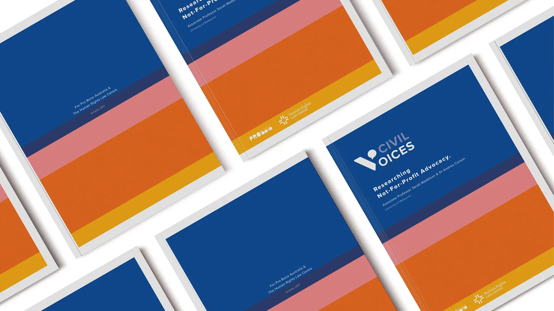 The Civil Voices report and survey needed a digital and printable report that reflects the social sector’s right to advocate and benchmark the results against a 2004 survey developed by the Australia Institute. Pro bono wanted the digital outcome and publication to help trigger the conversation about advocacy with a creative twist.