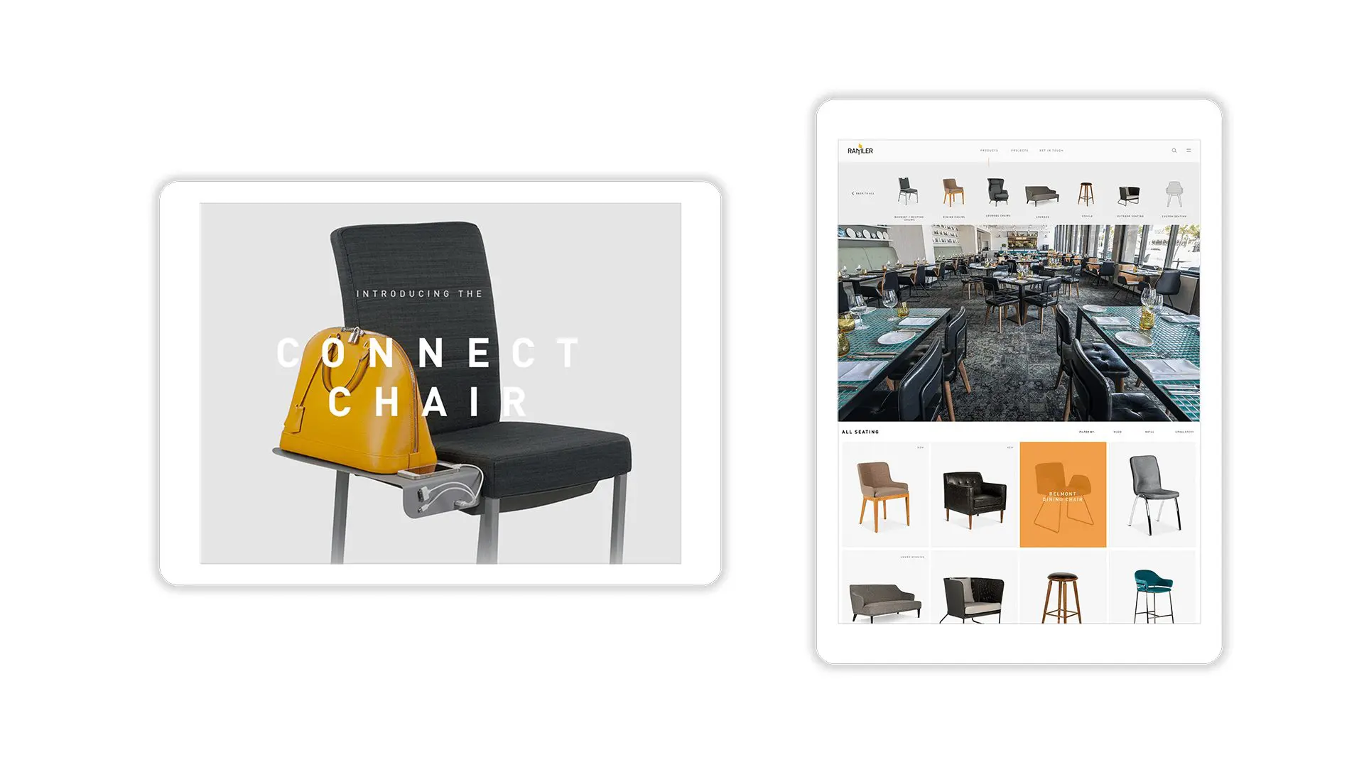 Ramler needed an innovative and modern website which would connect to their audience of designers and architects. They wanted their website to be minimal with a strong focus on the products. They also needed a landing page design for their 'Connect Chair'.