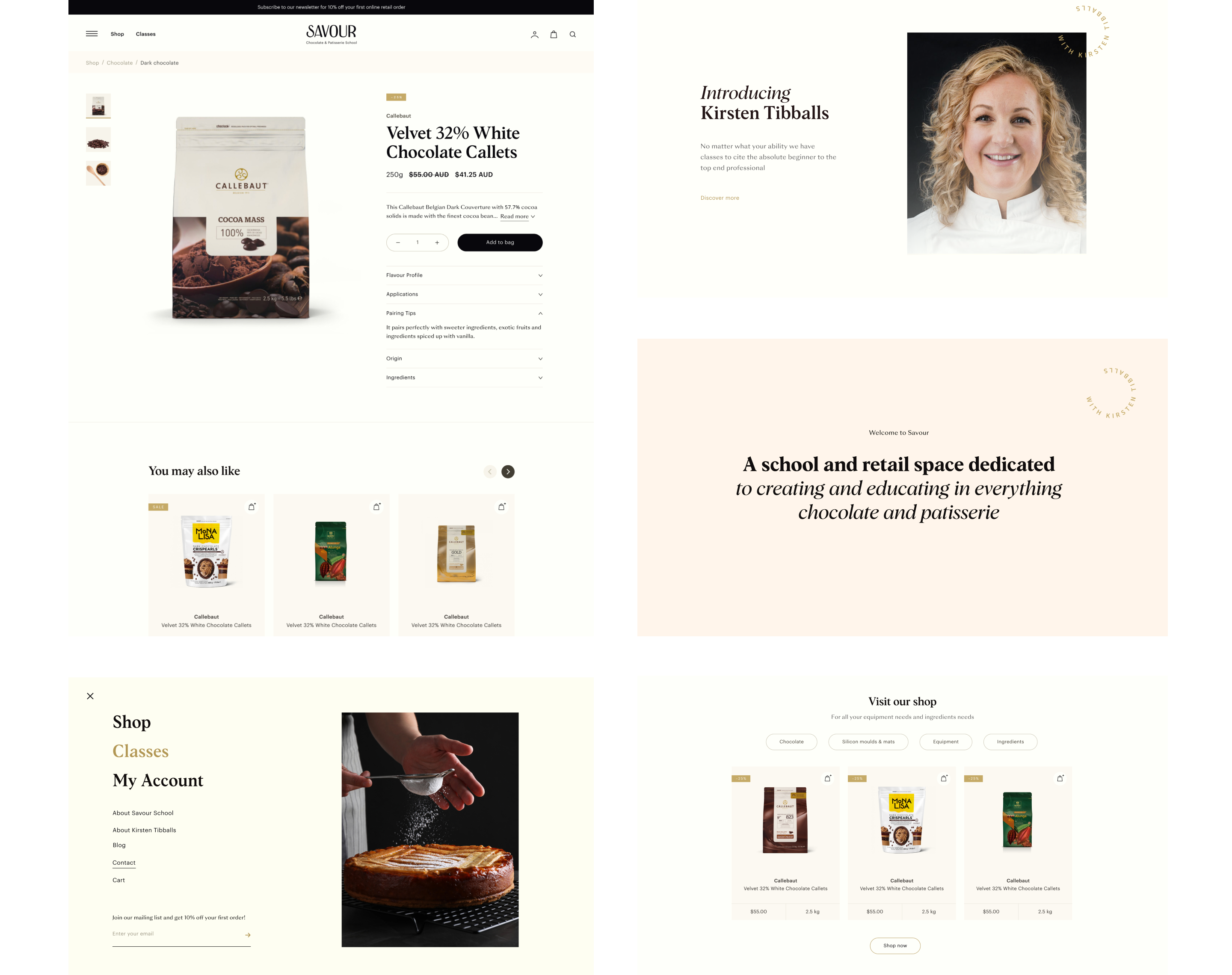 Savour School’s founder Kirsten Tibballs is an acclaimed and leading pastry chef. With over 100 video classes, there is no other platform that offers the same diverse and volume.