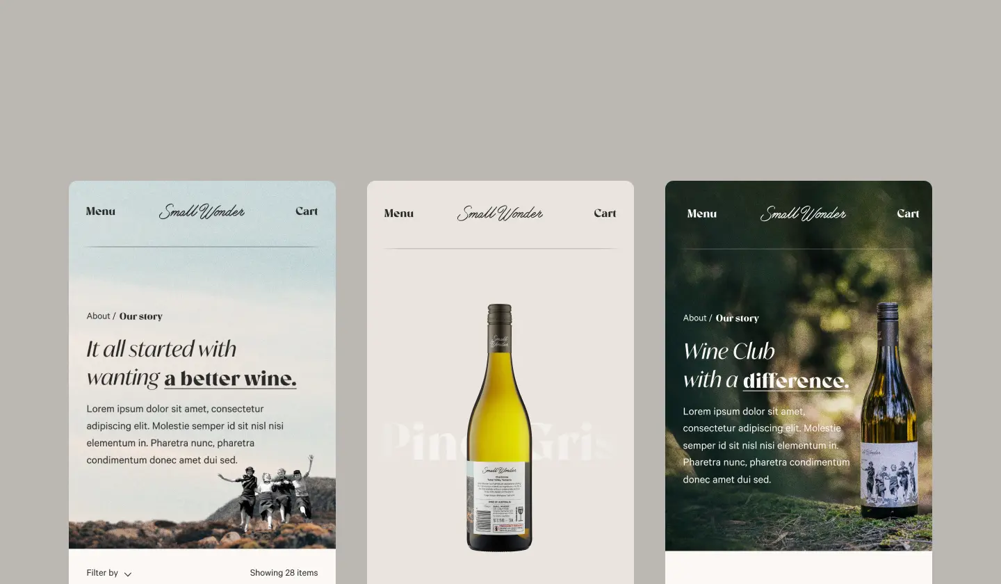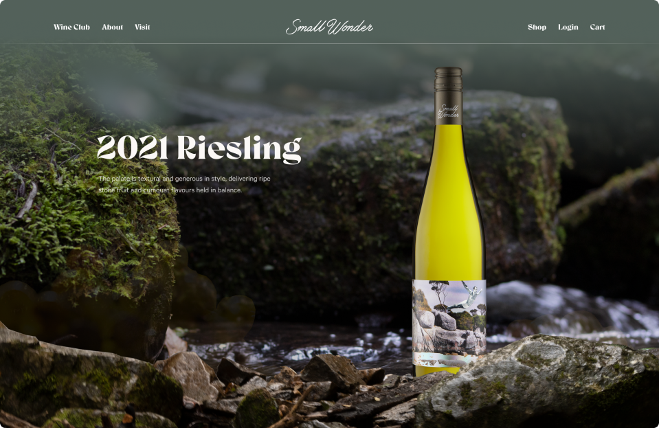 Small Wonder Wines based their business in Tasmania after finding a deep appreciation for cool climate wines. Committed to responsible land management, Small Wonder embarked on an agenda to convert the vineyard to organic, adopting 100% green energy, and fostering biodiversity. While on this journey, Small Wonder wanted a website that felt premium but unique from what other winemakers had. They needed something that spoke to their brand pillars and encapsulated the brand’s essence.