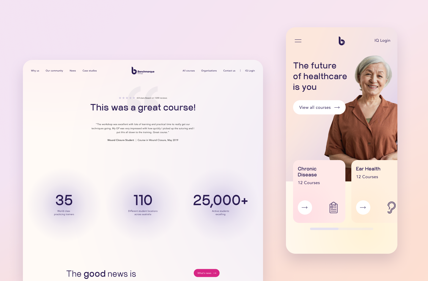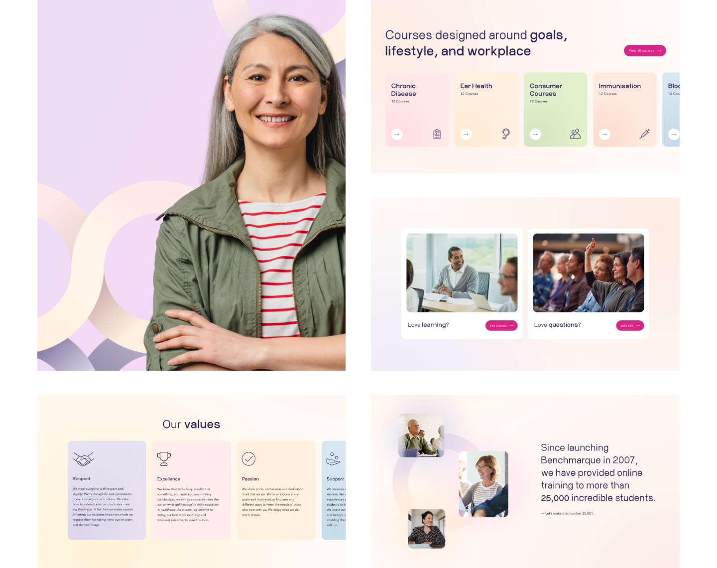 Benchmarque is an accredited healthcare training and education provider. They offer a mix of online and in-person courses exclusively for healthcare professionals. Benchmarque has been a long-time client of JTB and approached us to improve the user journey to ultimately increase sign-ups and at the same time implement a design refresh of the website to coincide with the launch of their new branding.