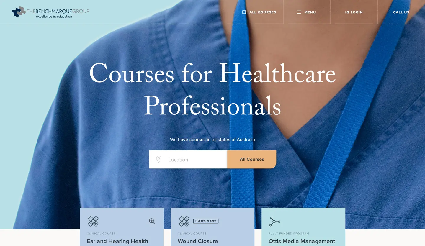 The brand’s core attributes and values are not currently being represented through the website. As a key & critical touchpoint of the brand, the website fails to communicate The Benchmarque Group as the authority and thought leader in education for Australia’s healthcare sector.