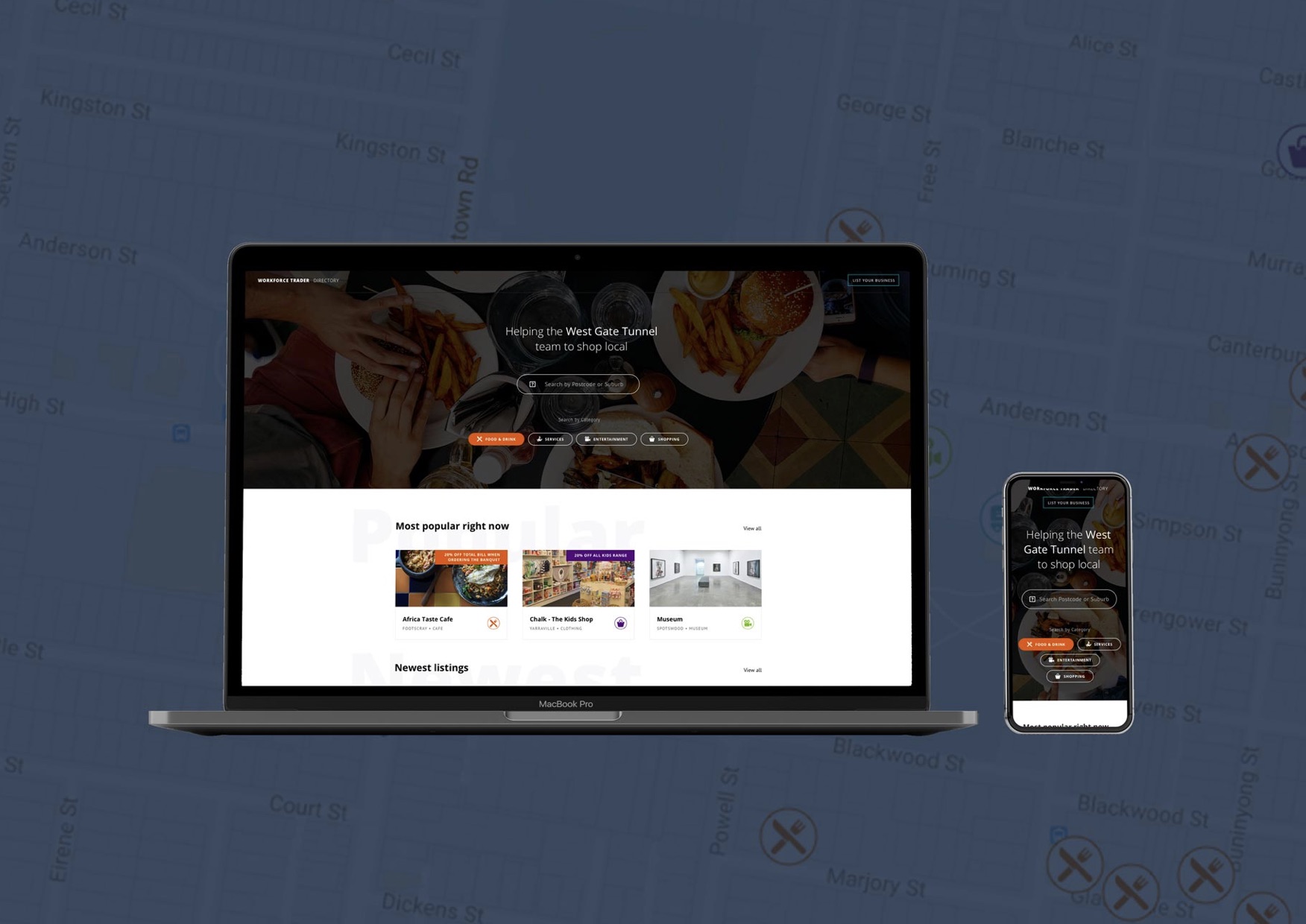 We created a dynamic online directory to connect local businesses with members of the Tunnel Project. Automated processes allow new businesses to register without manual involvement. Intuitive search considering user flow and motivations, allows users to find the best deals in their area.